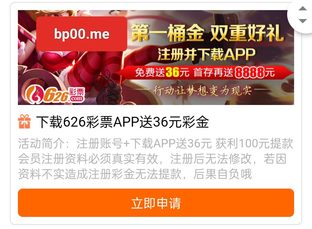 新用户注册绑卡 去申请网站自助申请36元彩金 无游戏限制 最低最高提款100元