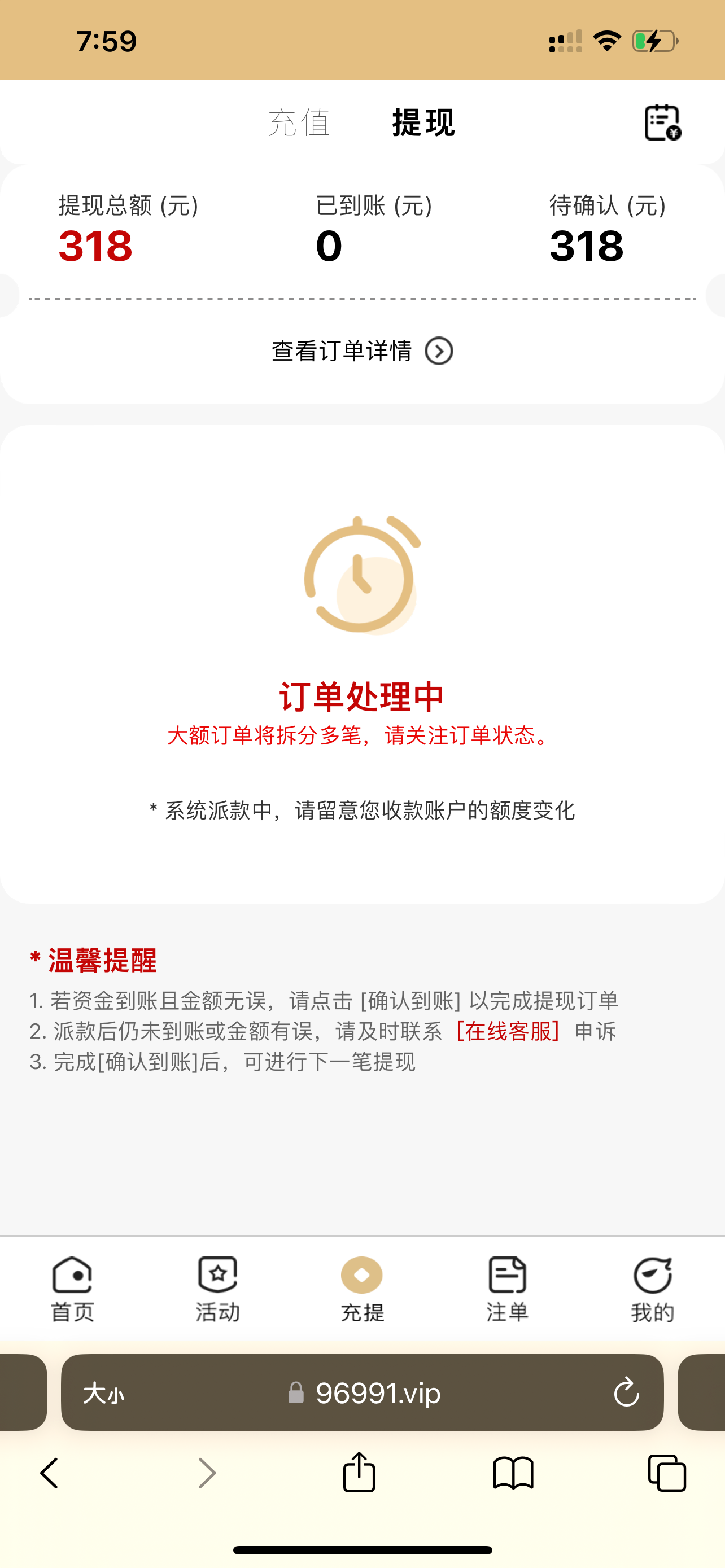 我昨天收到短信打了132,提现也不给出,让我充值