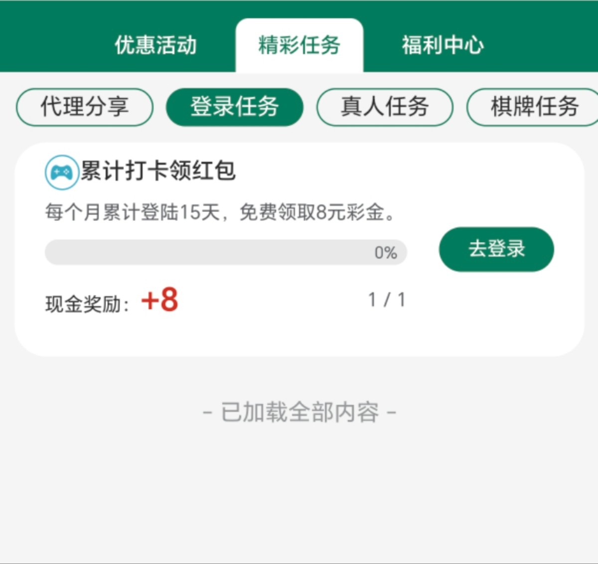 每天登录一下,登录十五天白嫖8块彩金