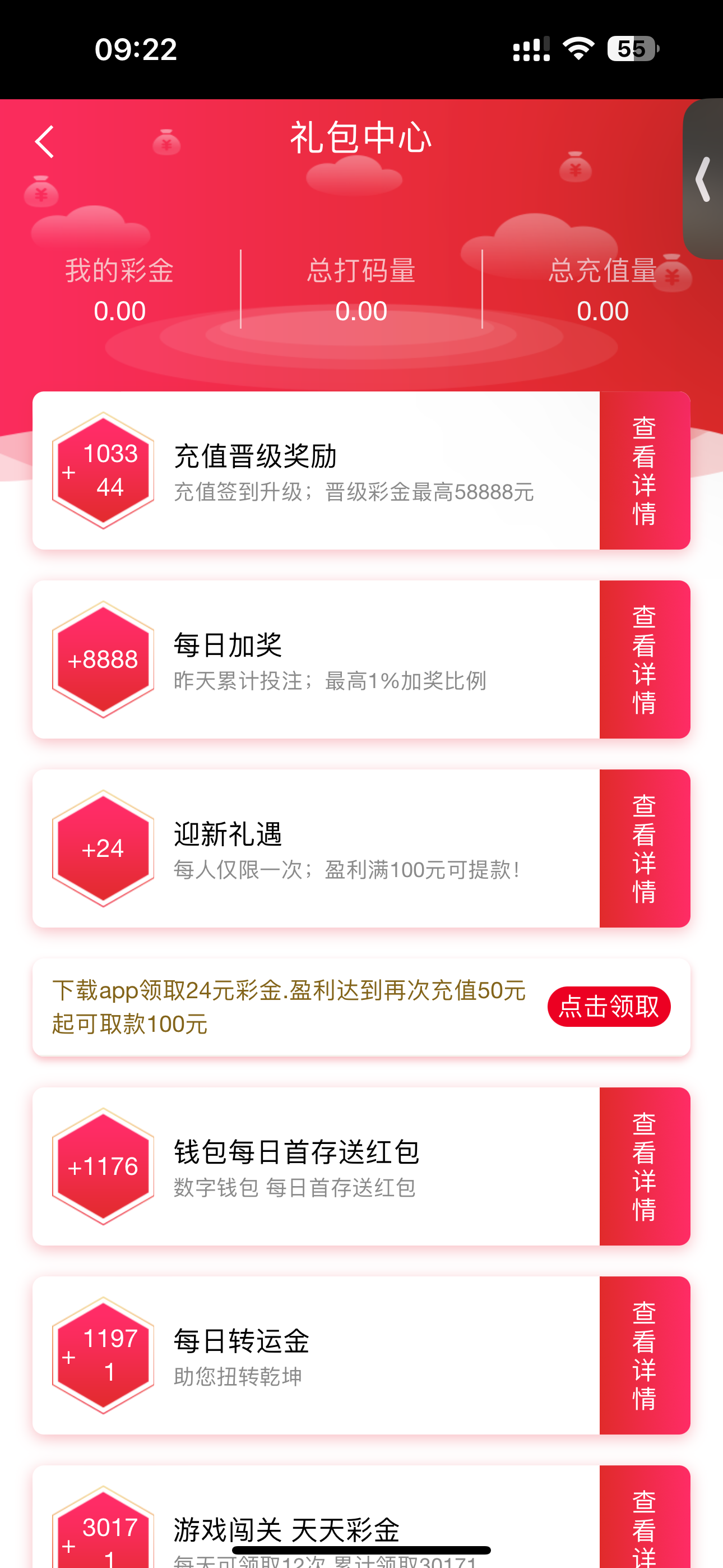 下载完注册账号 绑定提款方式 然后在第一个页面找礼包中心申请  勿充值 勿充值