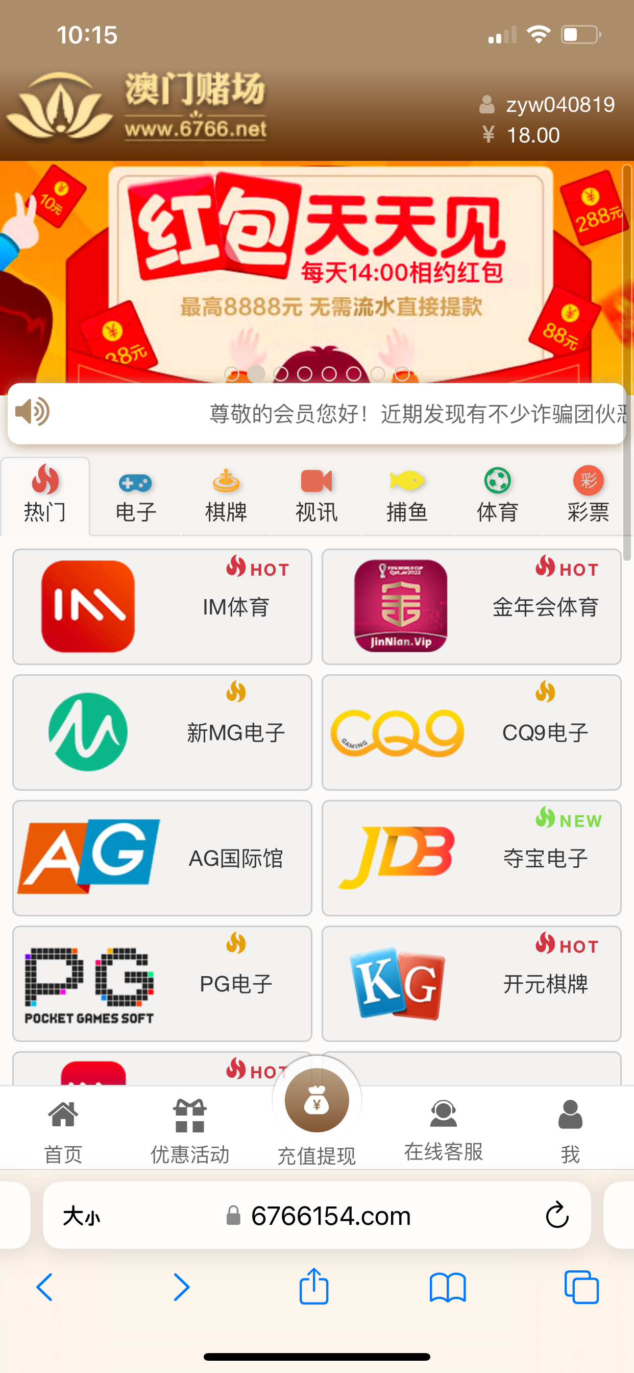 新用户注册完善资料点击【我——注册彩金】发短信秒领18,