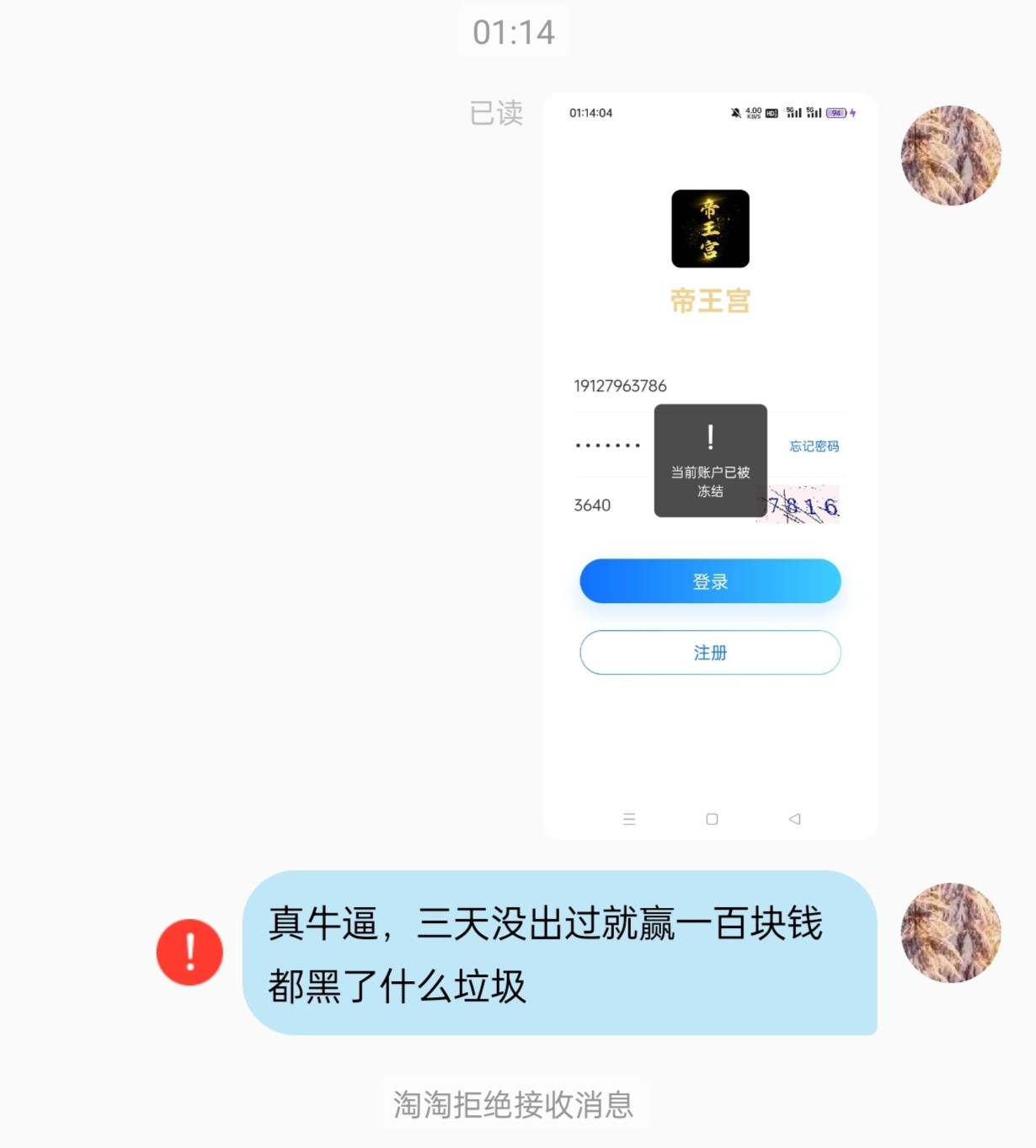 邮件的,又是个狗黑逼,玩三天首充就今天赢百块一出就被黑不愧是野台,曝光几个思语注意看别给送