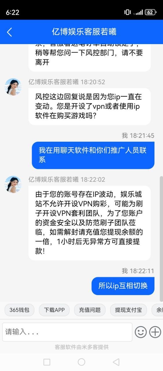 IP变动就黑款,真他吗奇葩我开个VNP不能玩了,要玩必须再充值你当我小白一样,这种台子闭坑吧,黑台子就离谱