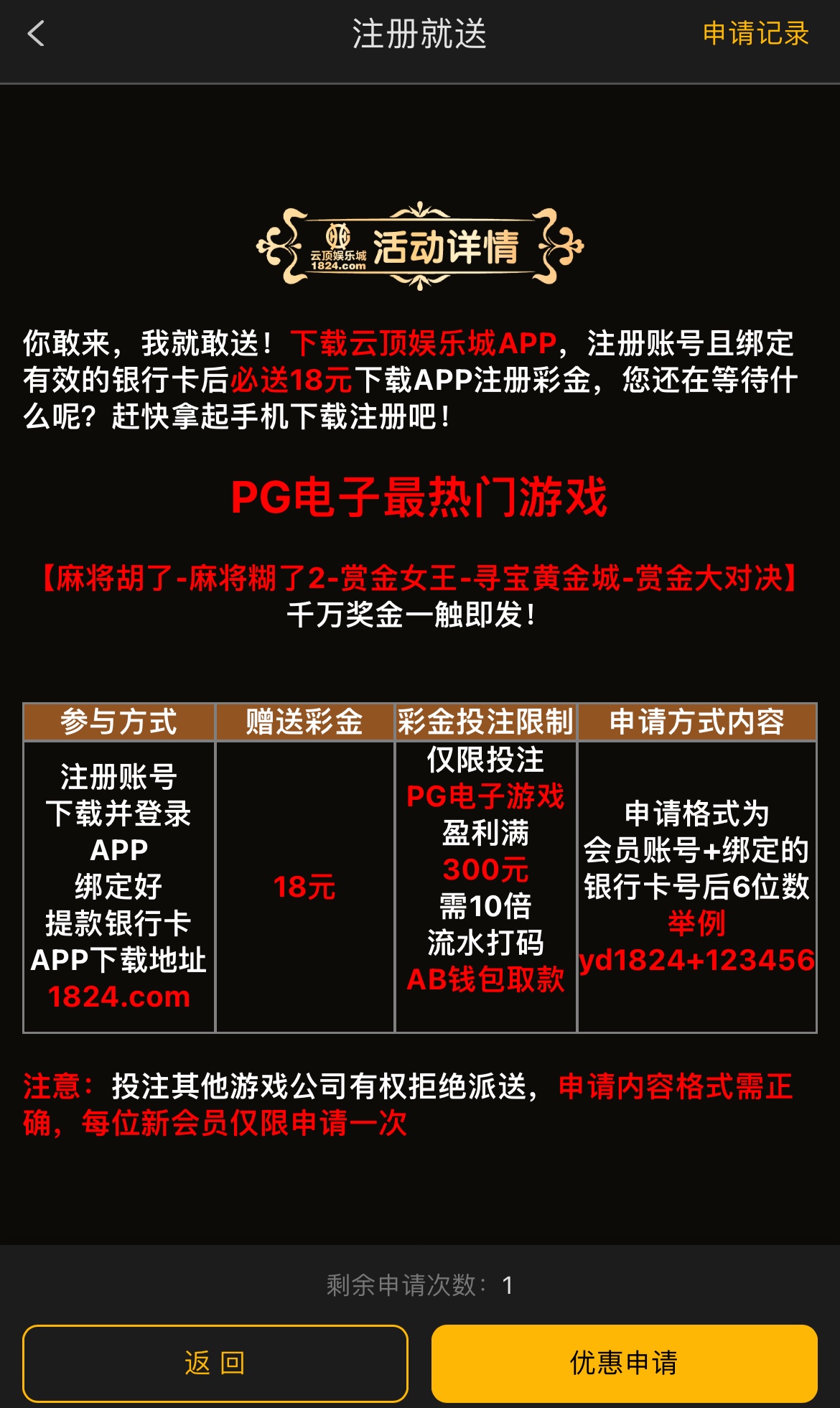 注册下载APP绑卡,优惠里申请,限PG电子,10倍流水,满300提现,限AB钱包取款