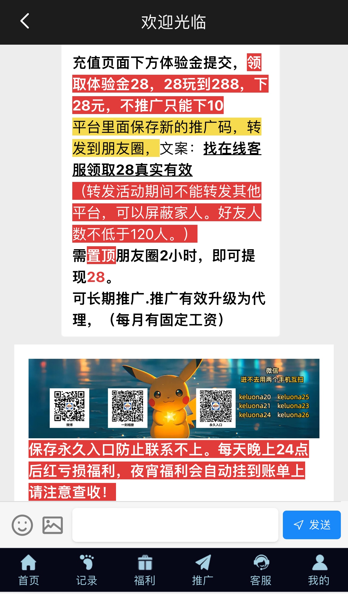 微信扫码一键登录,点击充值领取体验金送28!,小程序更新全部都重置了,之前领过的还可以在领一次,28打到288下10现金