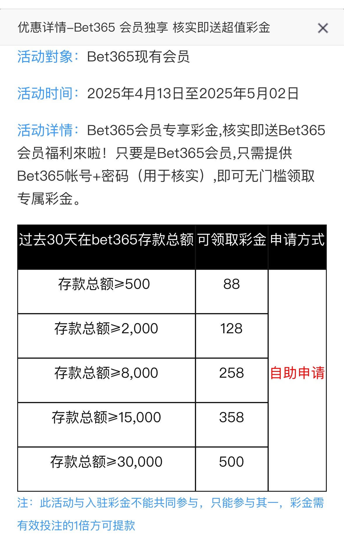 最近30在BET365充值过的入驻星际可以申请入驻彩金