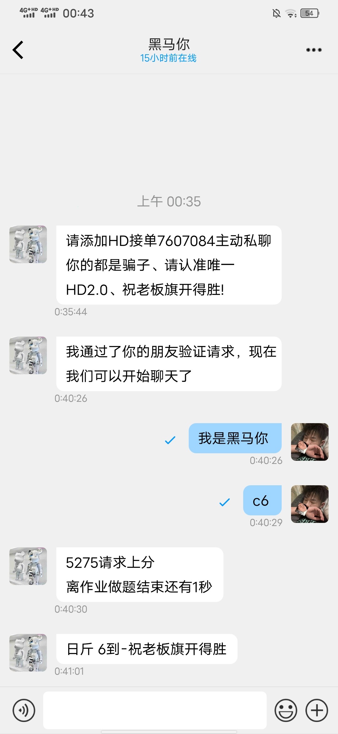 先加群再加接单 ,同意了直接加机器人C6(查6分)