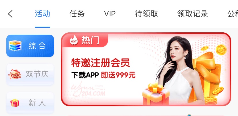 特邀优惠里自助彩金,10倍流水,盈利后需要充值204才能提现最高提现204(左右脑互搏),风险自行承担
