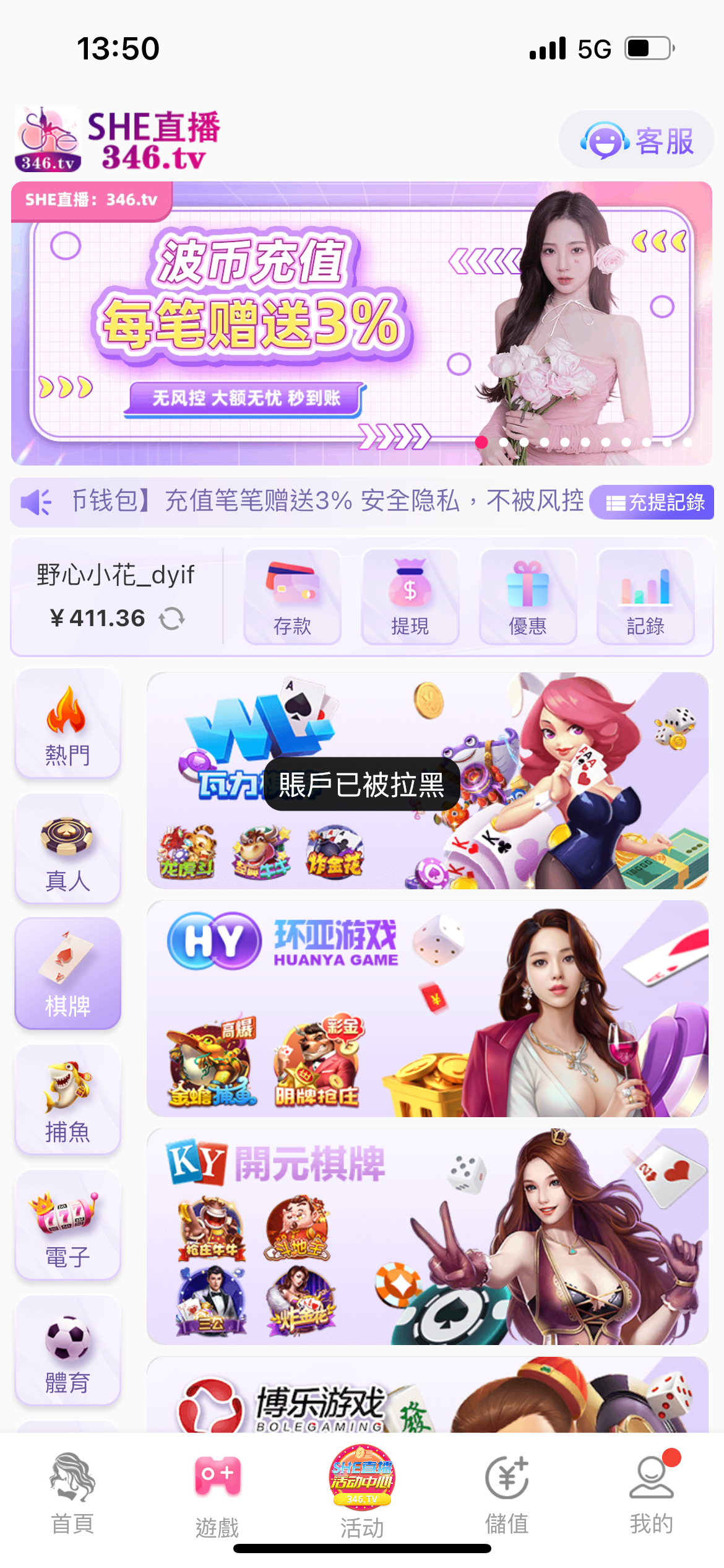 SHE直播黑台200上900出款就黑