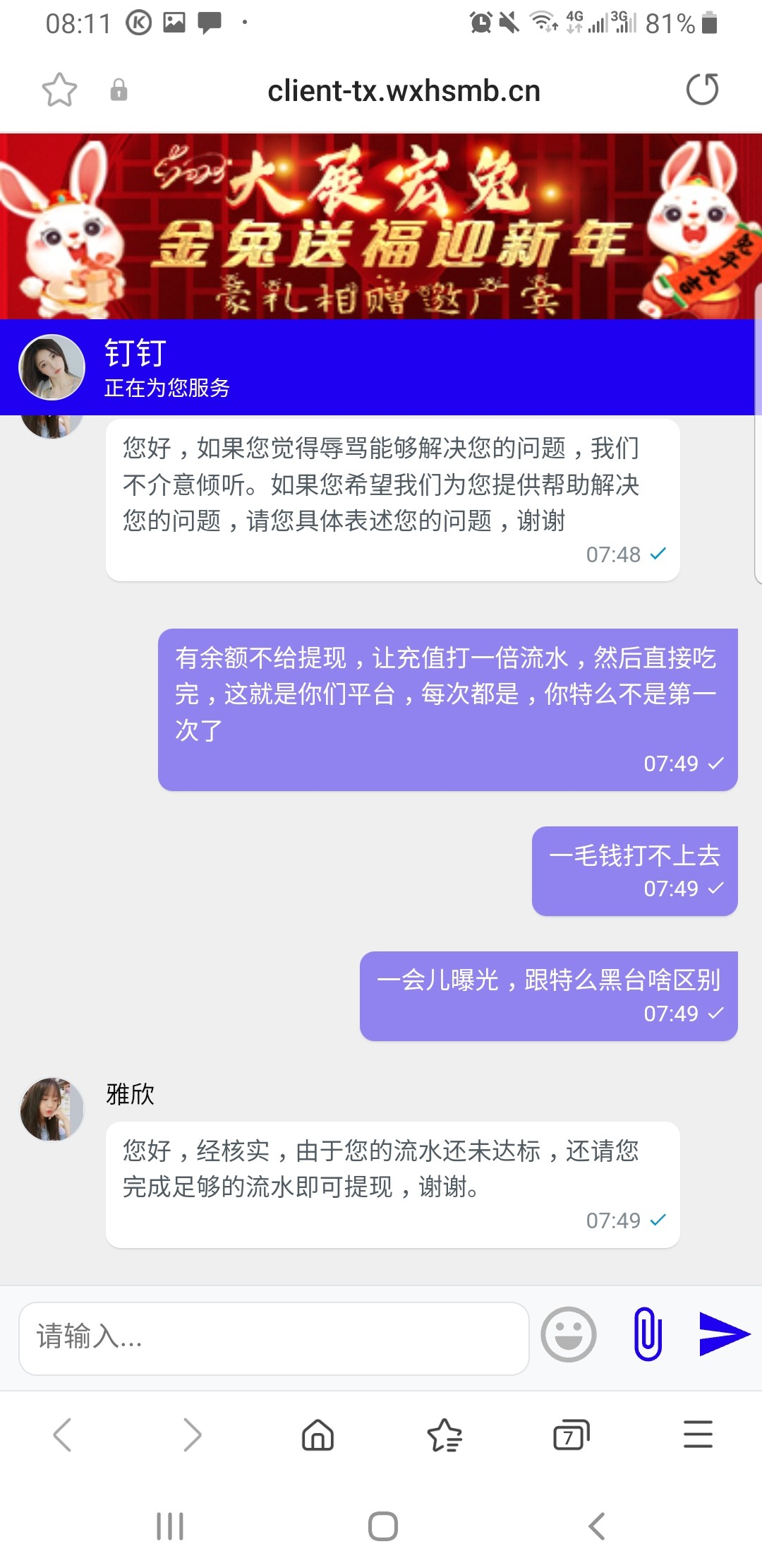 哈哈 我也是提现一百不给余额冻结 叫我冲同等金额才能解冻 直接开骂。傻逼这么玩不起开什么庄