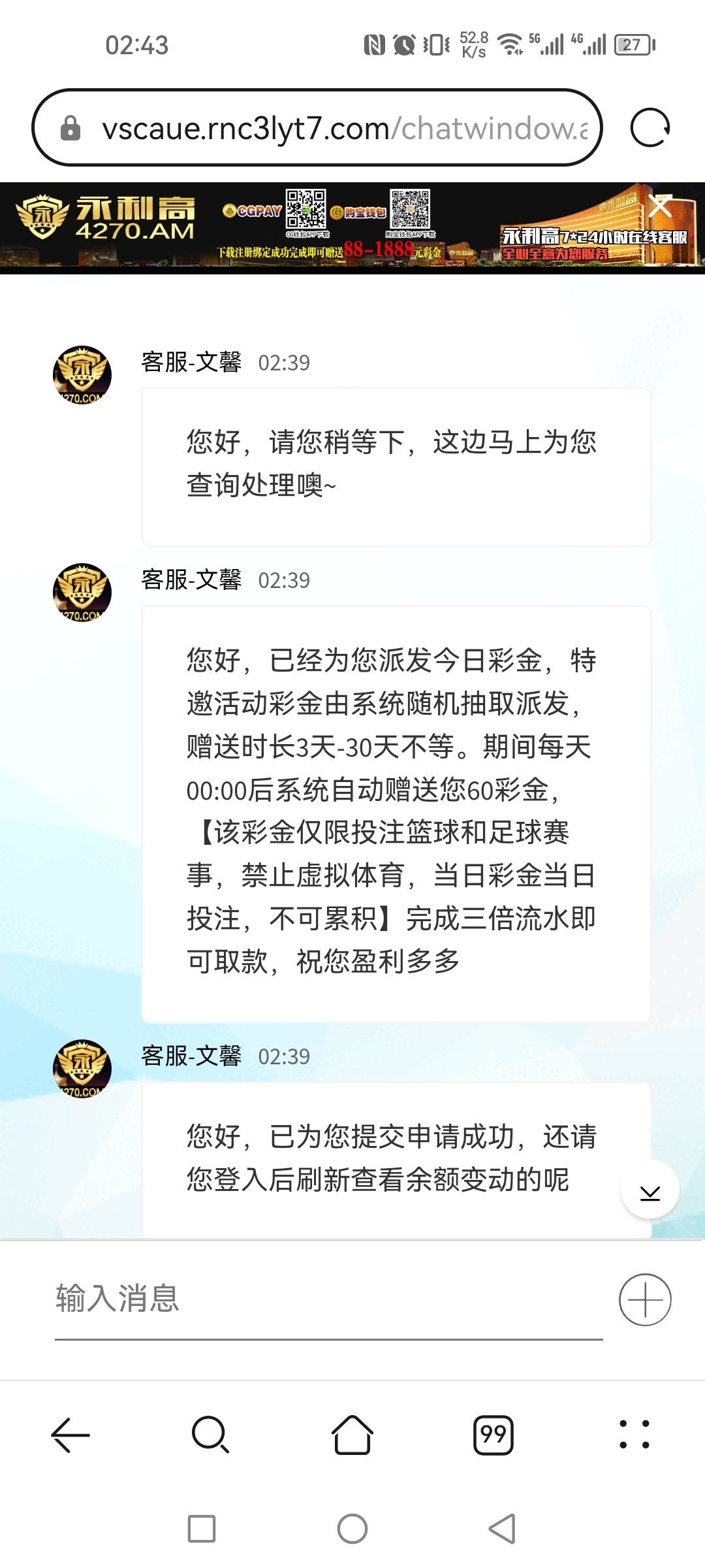 注册就送的还是找客服