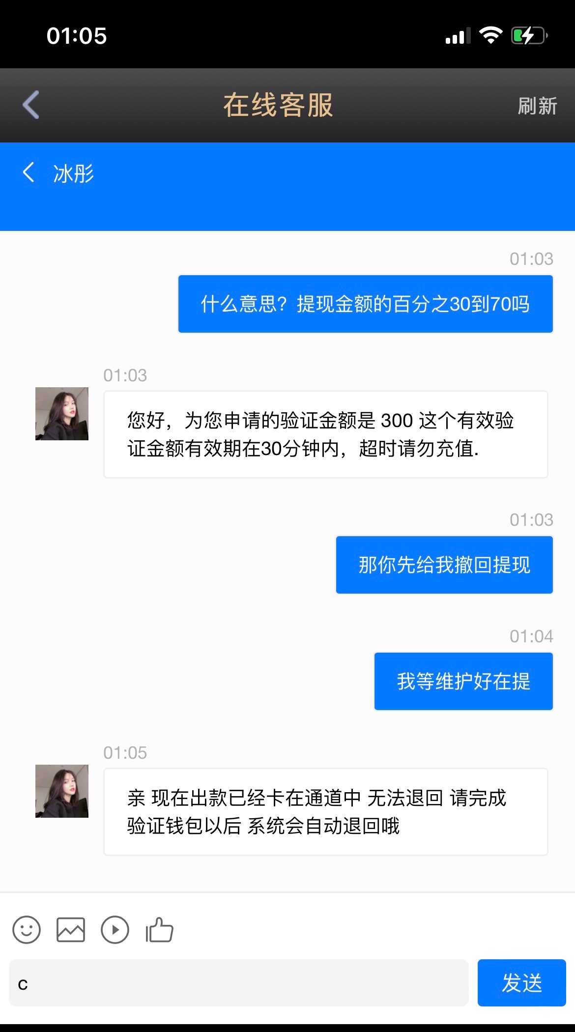 又说用kd下载好了又让我支付300验证下一开始提了1000剩下27又打到800最后也不给提