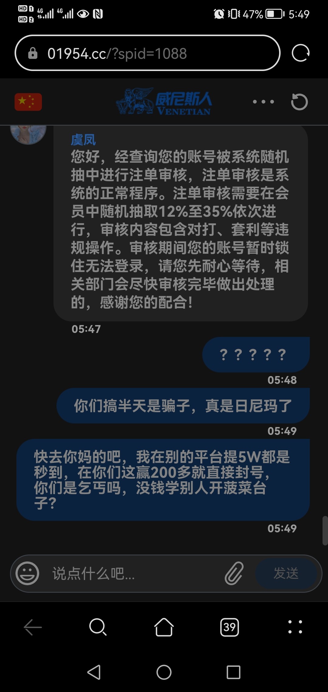 大黑台,充100取284封号,说啥片区核查,几个台子话术都一样