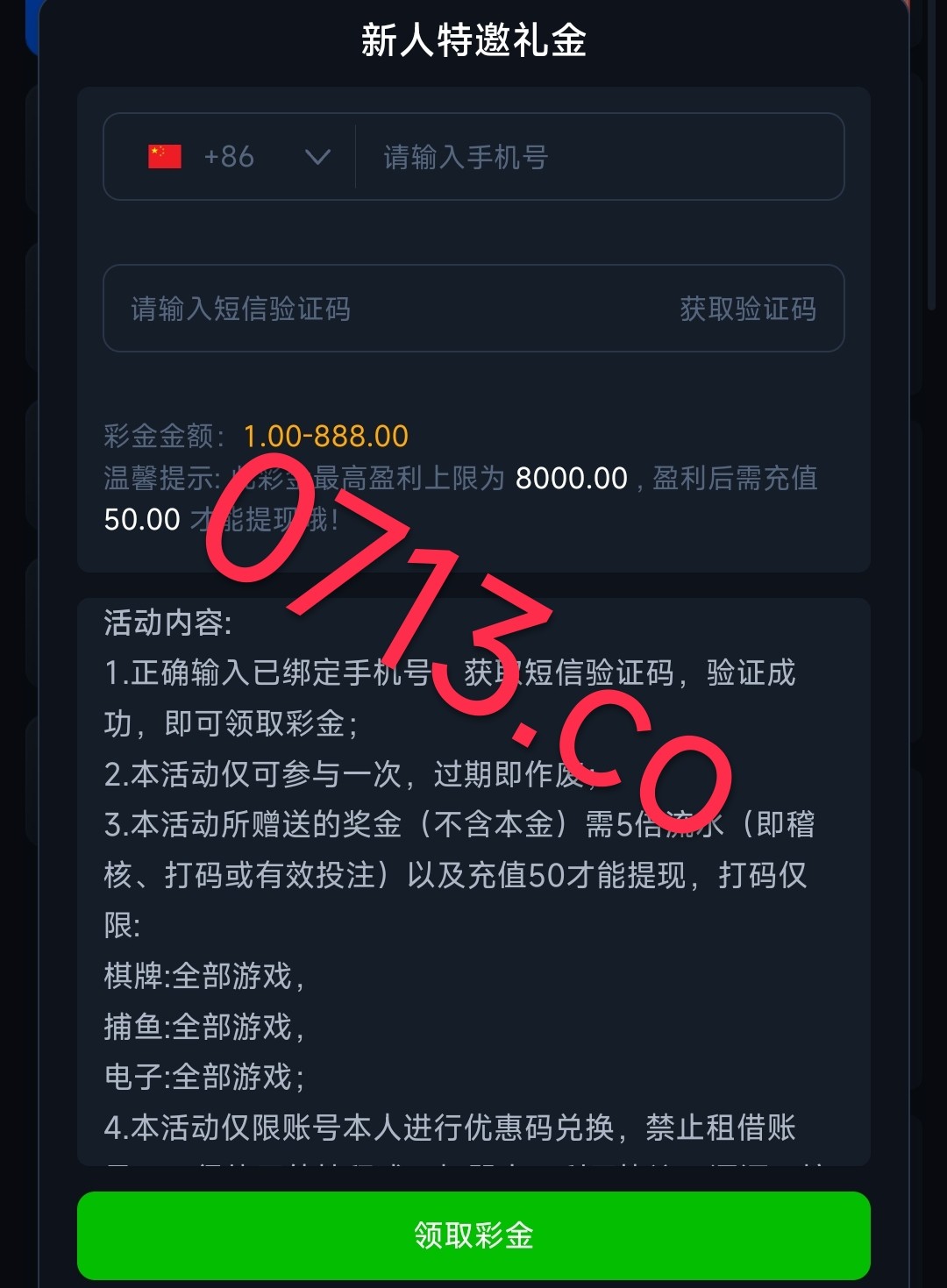 碰瓷特邀优惠里面申请特邀彩金 彩金5倍流水 提现要充值50(看自己)