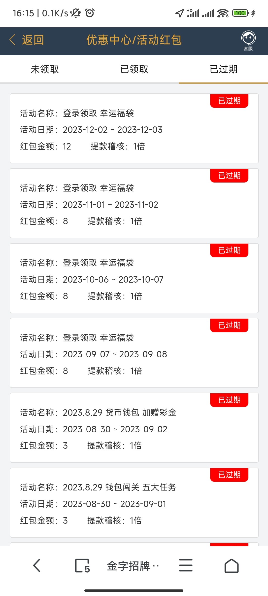 一群傻逼100都舍不得还想领取彩金,