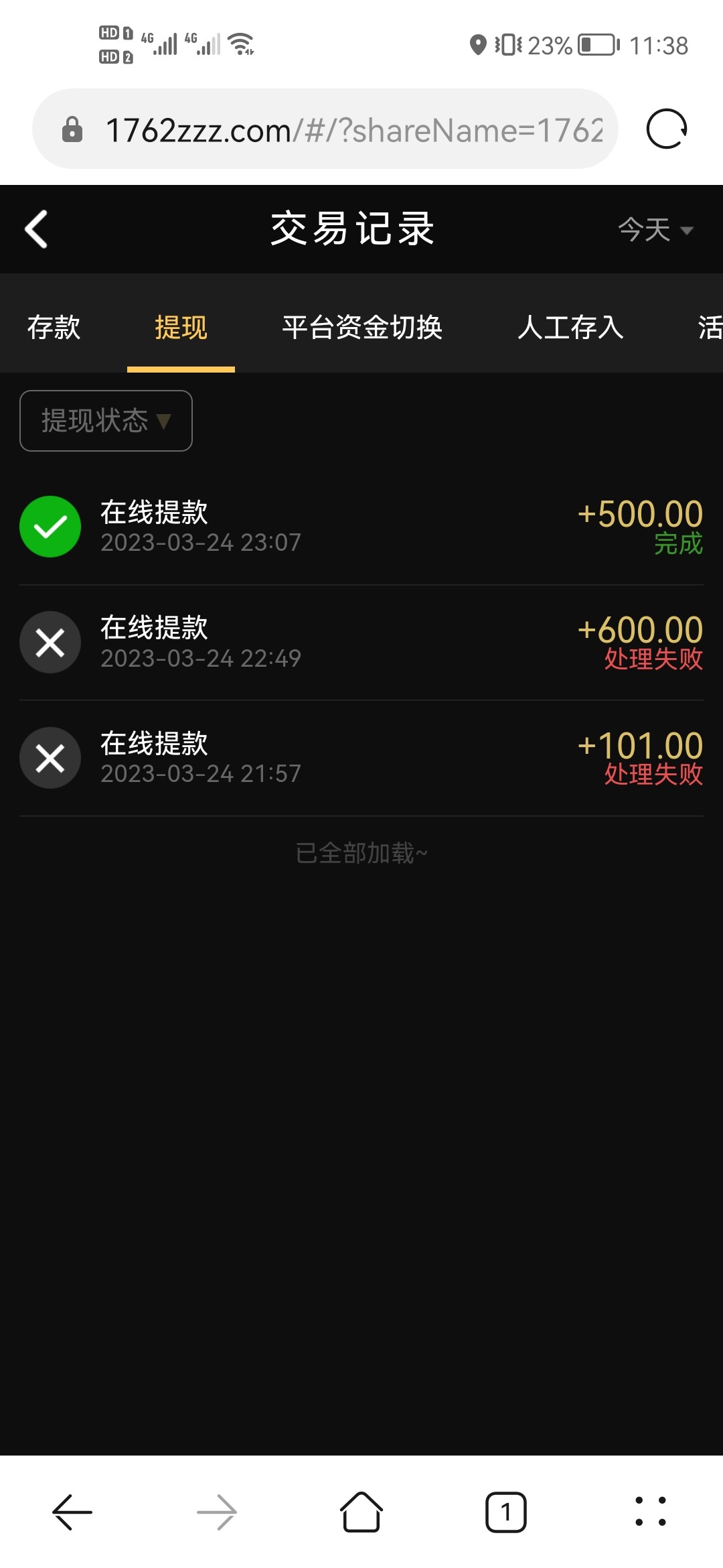 提四百8个小时成功到账