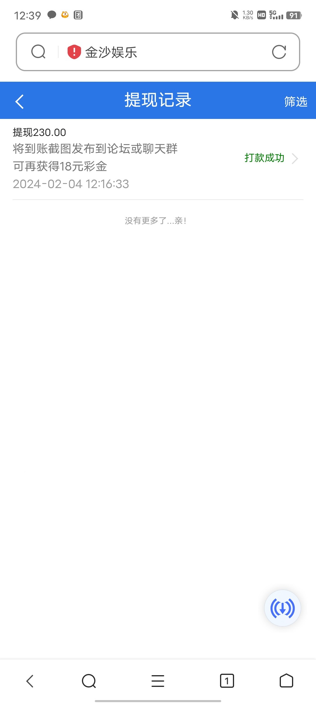 电子爆分到三百多,害怕不出款,转了一百到彩票,想输到二百提了的,乱下都赢,妈的直接彩票赢到七百了,后来慢慢输回去了,剩二百提了十几分钟就到了,送的18打了两千多流水,还好出款了