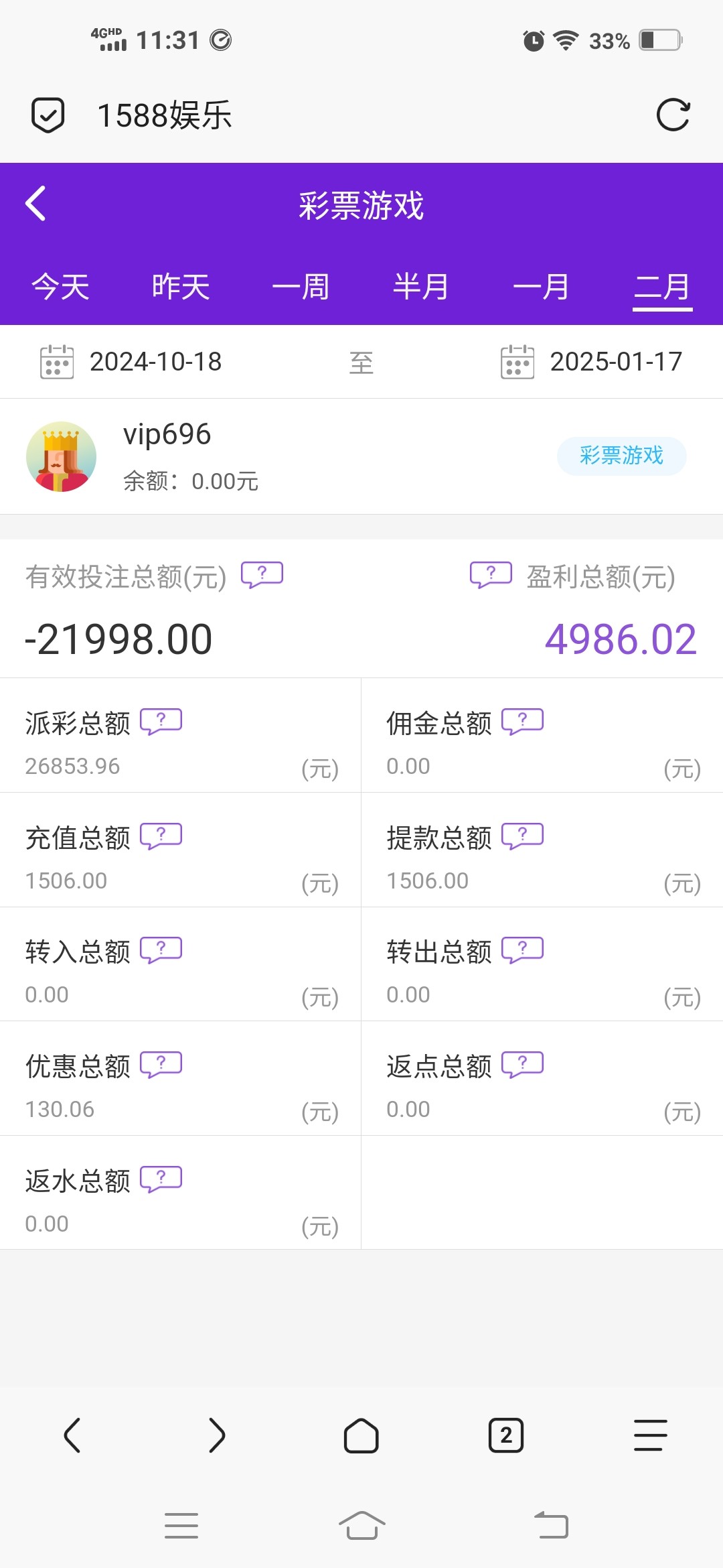 六大网的1588彩票网,昨天充2100输了,充3500打到9000提现说违规要再打三倍打码,然后打够三倍又不给提,又叫我打三倍,刚才反水打到400又叫我打1.8万打码,我投注彩票修改我注单