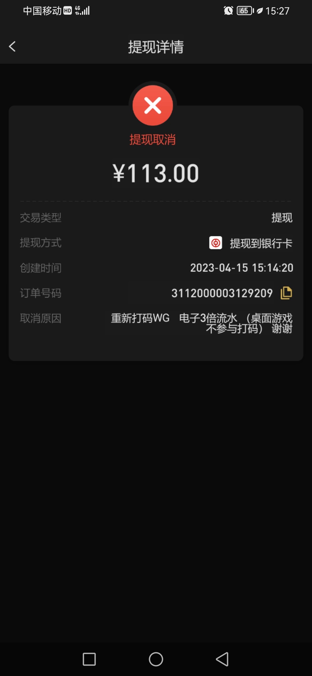 领了9块棋牌打到113取现退回