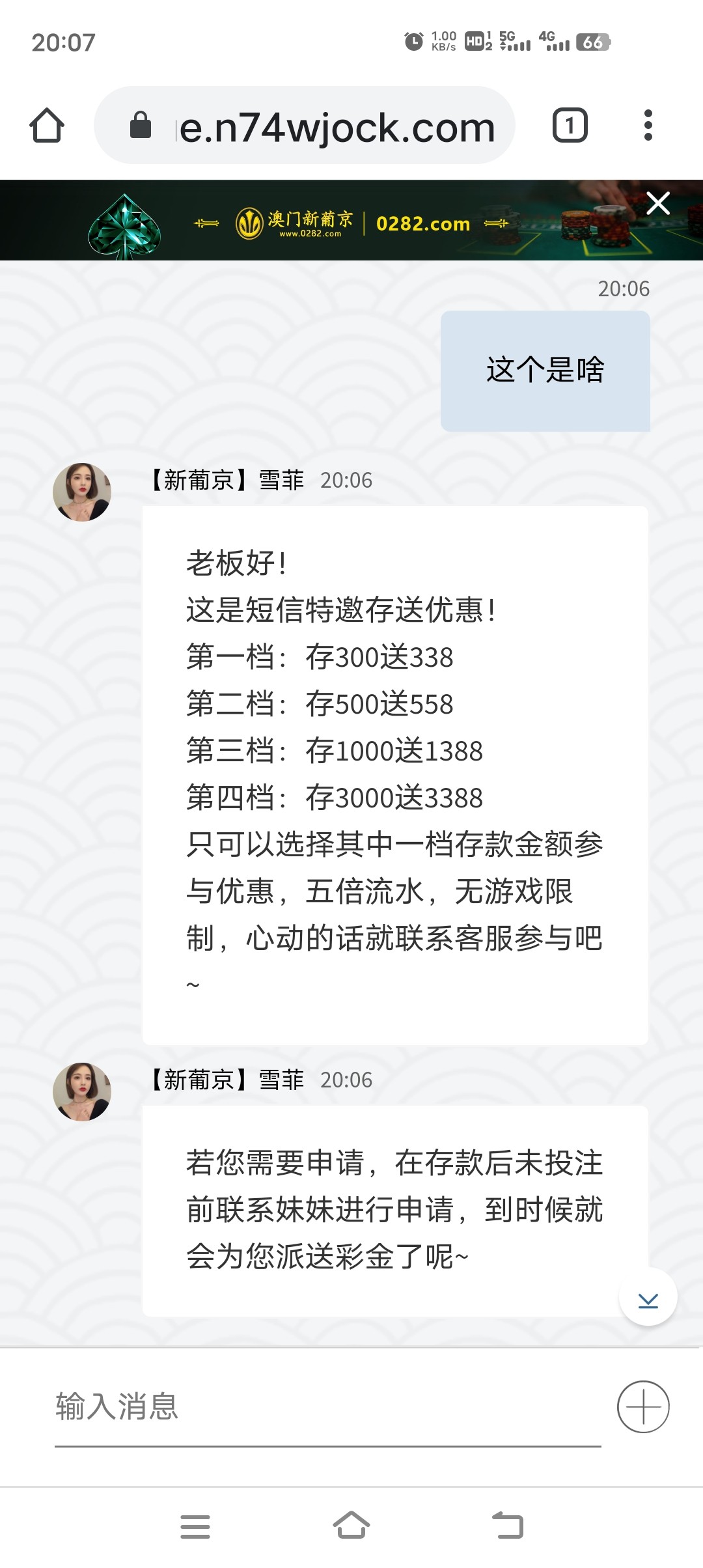 发短信过来的,去问客服回复存送的,有没有玩过的,0282。求告知是不是黑台子