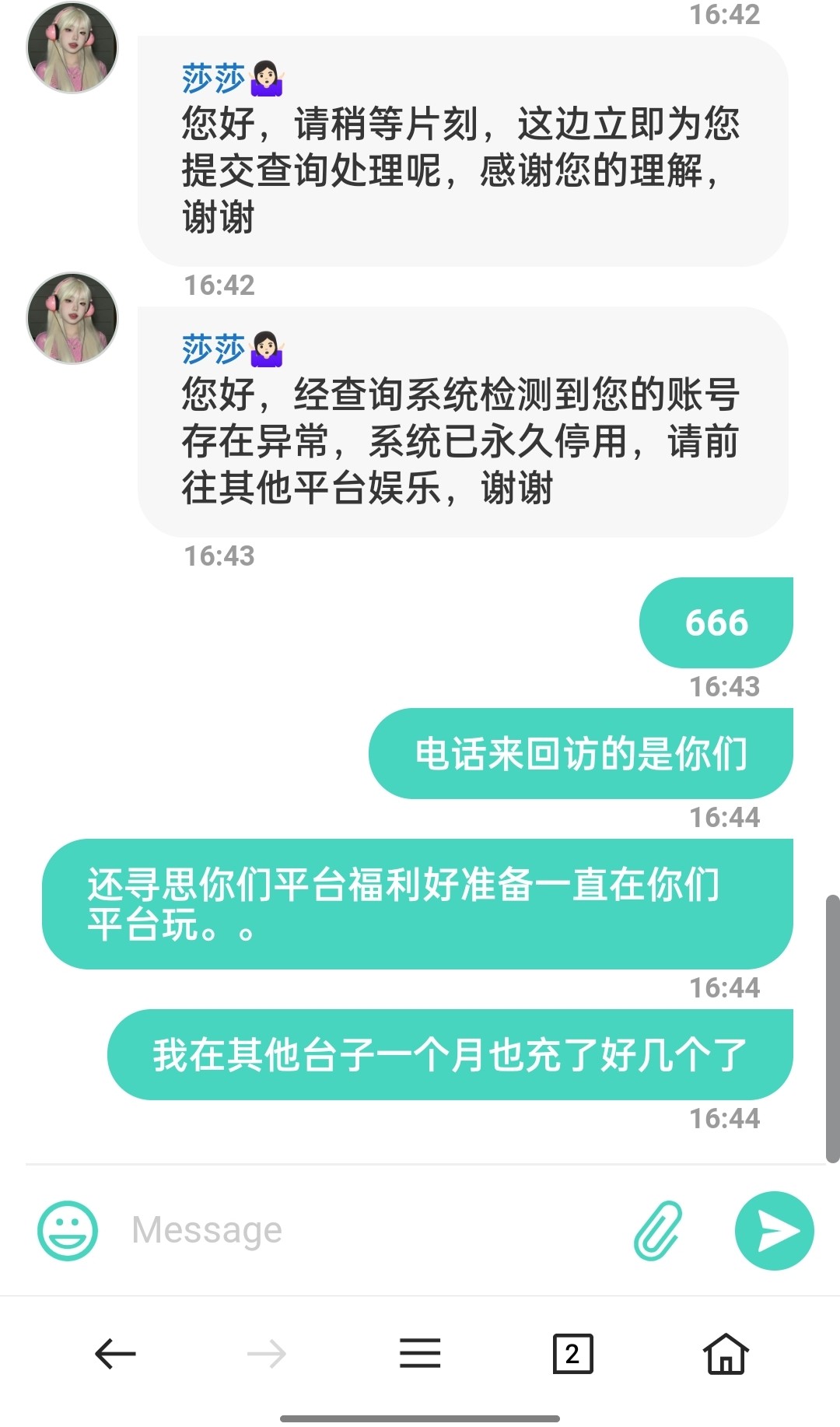 本来就是个黑笔台,我送58后面电话回馈送了18,18快我放平心态去干电子麻二炸了1000多全部都没在乎 因为100都黑,你觉得1000块能提的出吗?