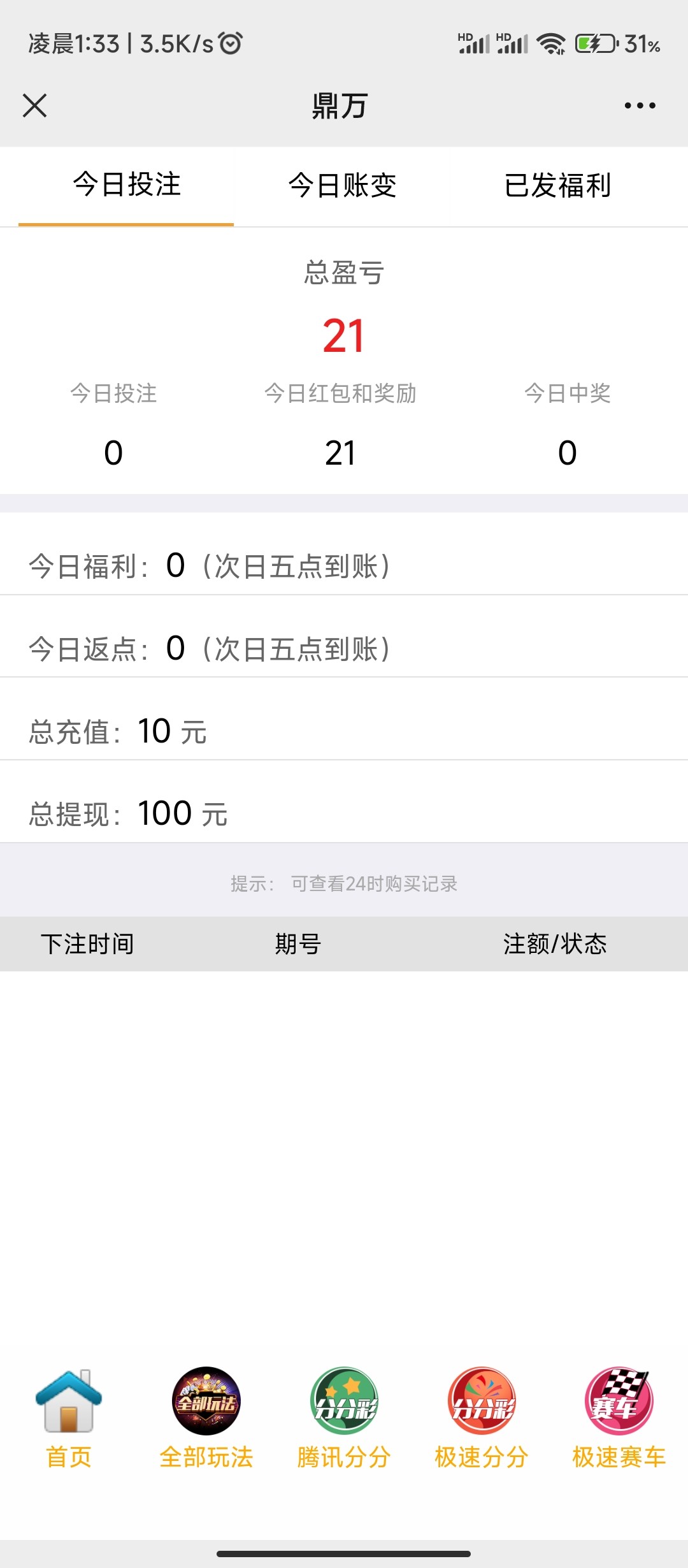 之前看到有老哥发了怎么没了,充10送20我打体育滚球到100下了,小玩一手可以试试