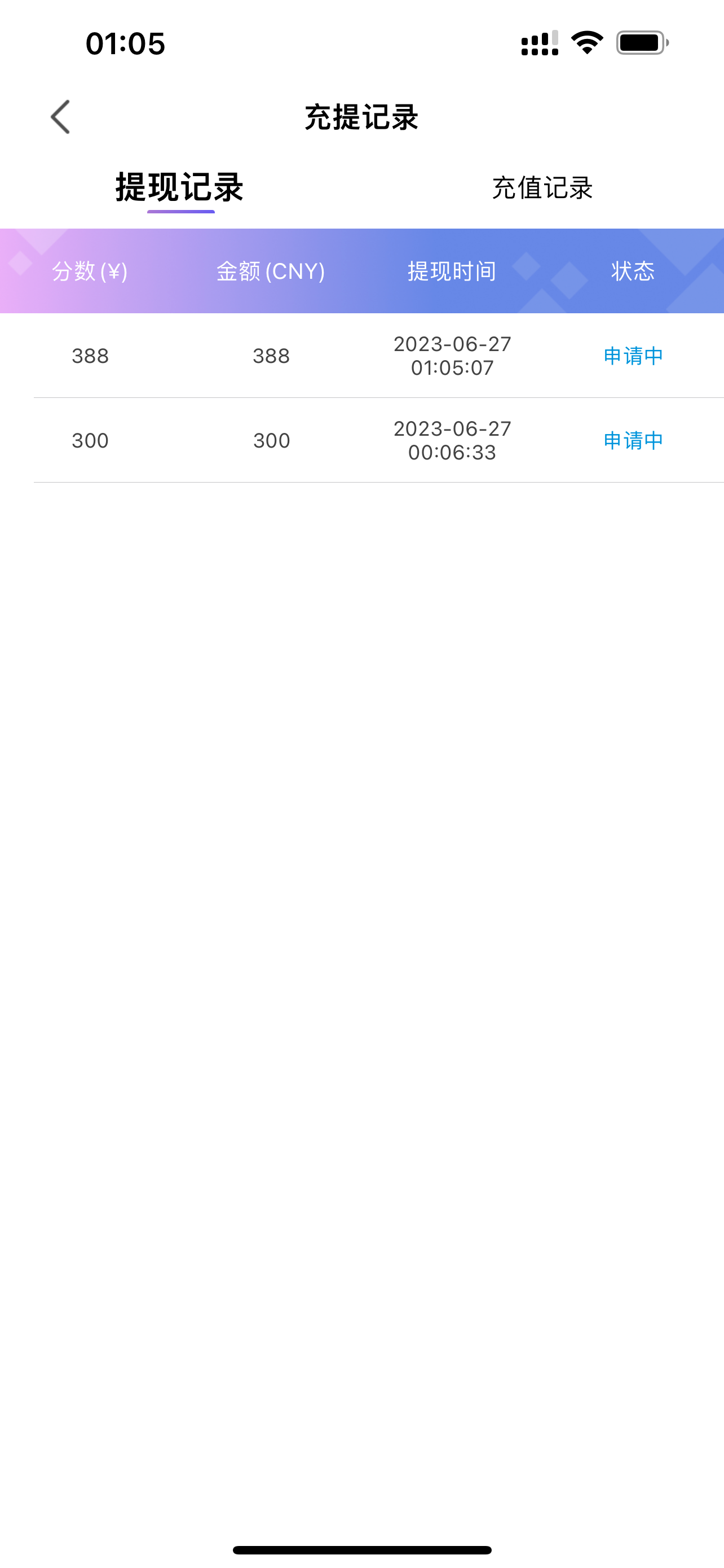 充了100申请了158打够1000流水提现300申请中